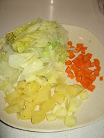 Pela via das dúvidas, não fosse a malta cá de casa não me querer acompanhar nos devaneios, deixei algumas batatas cozidas de parte (havendo batatas cozidas e azeite, não precisa haver mais nada)… Cozi batatas, cozi cenouras, cozi couve portuguesa, salteei uns quadradinhos de pão, misturei tudo e por pouco não consegui ir a tempo de fotografar… As batatas ficaram no prato, porque o que realmente teve mais saída foi a roupa velha!!!! Que o diga o Mário quem nem viu quase a cor ao pão, já que a Joana conseguiu roubar todos os quadradinhos do prato do pai! Acho que isto será para repetir. É fantástico com peixe grelhado ou frito.